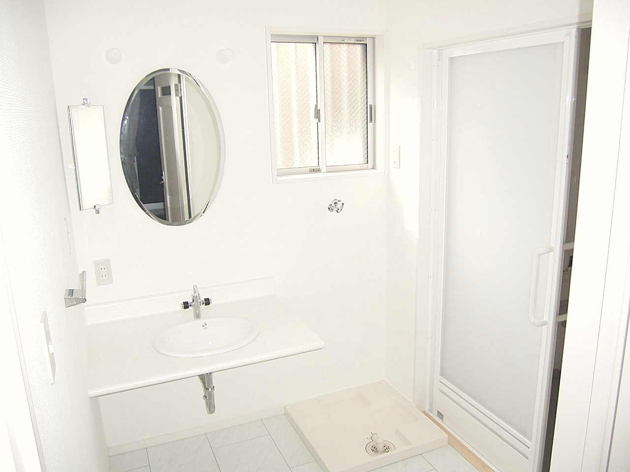 清潔感のある白を基調に、アクセントに水色を取り入れることで、明るく開放感のある印象を与えています。